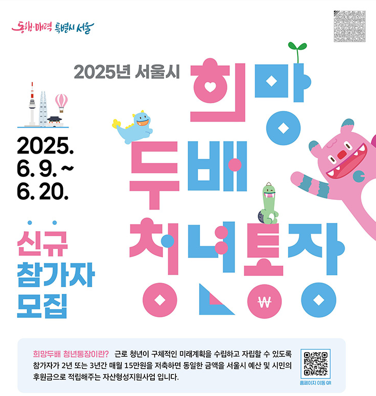 청년들의 삶이 정말 팍팍합니다. 서울시에서는 2025년 서울 청년들의 구체적인 미래계획과 자산형성을 위한 희망두배 청년통장 지원자를 모집하고 있습니다. 아래에서 보다 자세히 지원방법, 시기, 절차 등에 대해 알려드리도록 하겠습니다.
