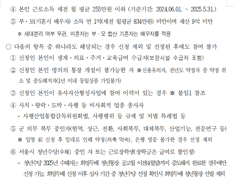 - 모집대상 : 서울시 거주 만 18세~34세 근로 청년(1년간 3개월 이상 근로 경력이 있는 자, 월 평균 근로소득이 255만원 이하인 자)